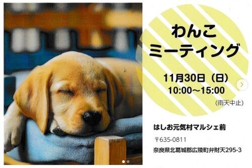 朝晩は少し寒さを感じますが、 やっぱり暖かい・・・ 日中は日差しも強くて少し動けば暑いぐらいです。 来週の日曜日は、 奈良の「はしお元気村マルシェ前」で開催される、 ワンコミーティングに出店します。 今回は法隆寺ドッグスクールさんのブースでの出店で…